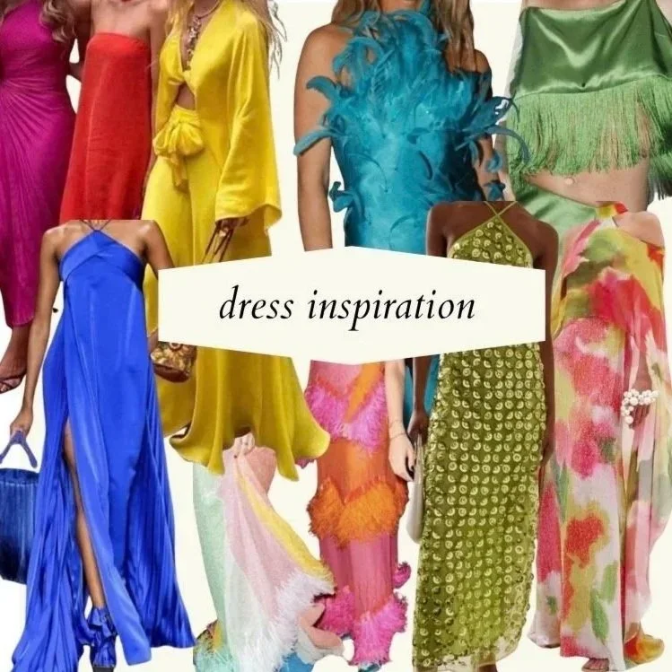 For women, long dresses or statement separates. Vibrant colors! Feathers! Beads! Prints! Sparkles! Drama! No such thing as “too much”— please no white or black.